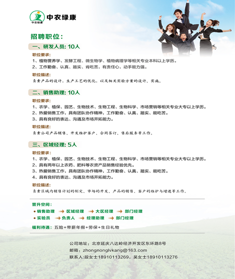 1、植物营养学、发酵工程、微生物学、植物病理学等相关专业本科以上学历。