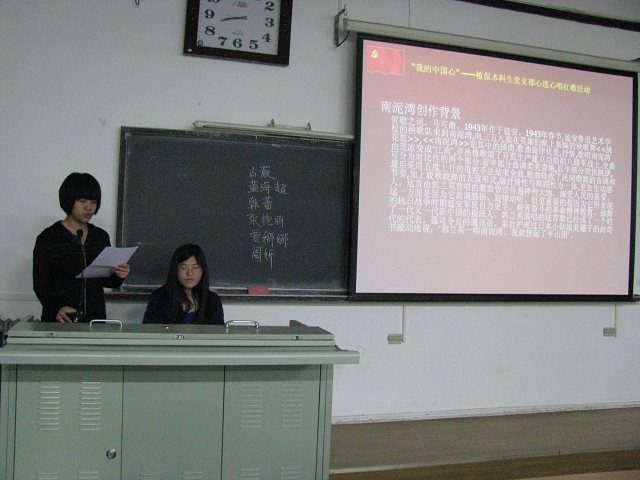 2011年5月11日晚8:30,122cc太阳成集团植保本科生党支部在教A101举行了植保本科生党支部唱红歌活动---“我的中国心”。