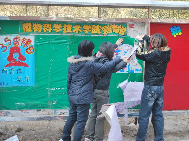 2011年3月4日12:30,122cc太阳成集团青年志愿者协会(青协)积极举办学雷锋清扫校园活动,对公司属学院管理的公告栏进行了清理、更换。全体成员为宣传栏更换上了精心制作的学雷锋宣传海报,同时,仔细的擦拭了宣传栏、清理了宣传栏周围的垃圾。
