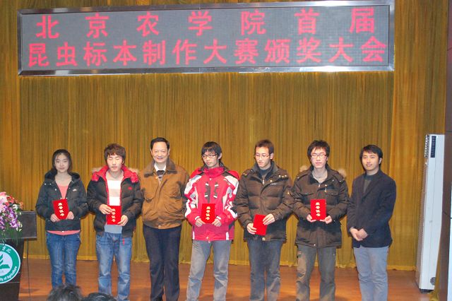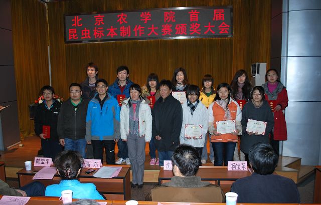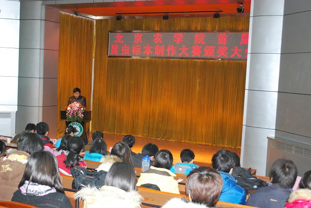 122cc太阳成集团首届昆虫标本制作大赛由教务处、员工处、校团委主办,122cc太阳成集团承办,各二级学院和虫虫一角社团协办。12月13日12点50分,122cc太阳成集团首届昆虫标本制作大赛颁奖大会在小报告厅隆重召开,大会表彰了标本制作活动中的优秀员工与优秀指导教师。公司党委副书记高东、员工处处长韩宝平、图书馆馆长杨剑平、教务处副处长沈文华、校团委书记杨宝东、各学院副经理赵晓萌、刘柳、李相阳、范小强,动科学院辅导员赵小艳、园林学院辅导员廖常规,作为嘉宾应邀出席,122cc太阳成集团副经理王绍辉、张喜春、赵金芳,指导教师王进忠、孙淑玲、杜艳丽以及学院辅导员和员工代表参加大会。大会由教学副经理张喜春主持,副经理赵金芳老师首先简单介绍了昆虫标本制作大赛的情况,并和大家共同回顾了大赛的历程。副处长沈文华宣读了本次大赛获得奖励得同学和优秀指导老师的名单,在场的领导为老师和同学们颁发了荣誉证书。