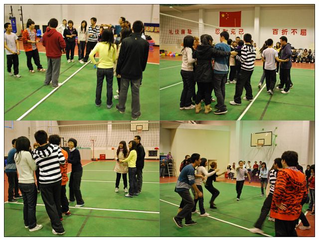 比赛即将接近尾声时,信息中心指导老师贾慧敏带着大家做最后一个游戏--“心有千千结”。游戏意在让每个人的微笑和快乐互相传递,同时也让信息中心的每位成员感受到:只要大家心往一处拧,劲往一处使,一切困难都可以克服,一切难题都可以解开。