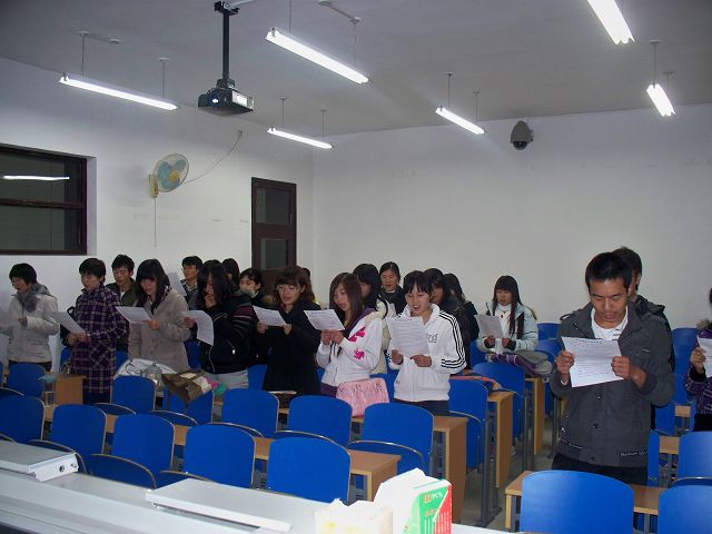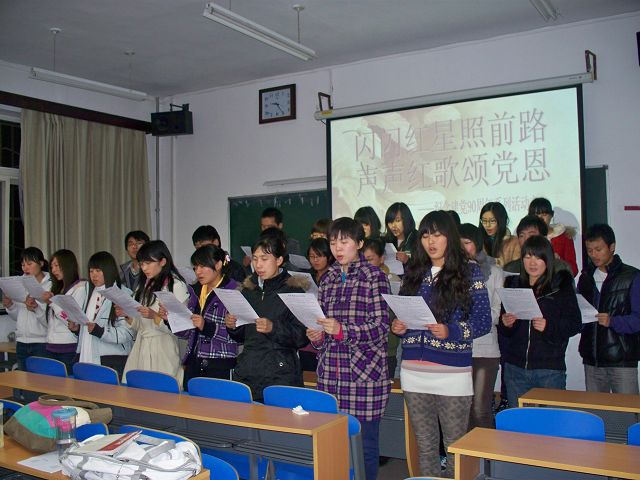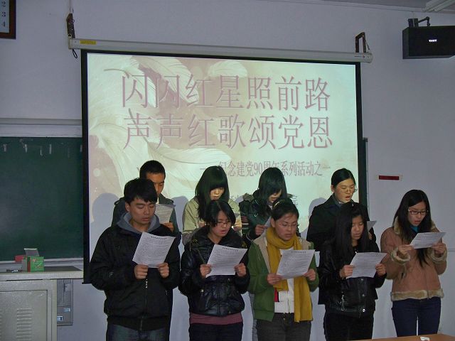 2010年10月28日晚8:20,122cc太阳成集团植保本科生党支部在A103开展以“闪闪红星照前路,声声红歌颂党恩”为主题的活动。