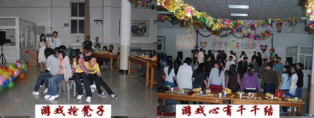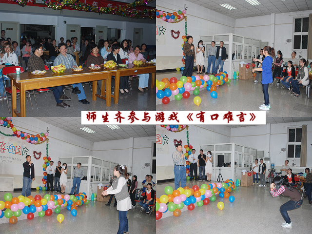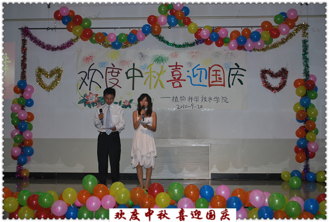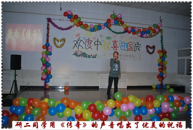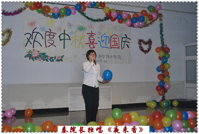 9月20日19时,122cc太阳成集团在校工会活动室为2010级研究生举行 “欢度中秋·喜迎国庆”联欢晚会。科技与研究处处长张志勇、122cc太阳成集团经理秦岭、副经理王绍辉、张喜春、赵金芳,研究生导师杨起简、沈元月、谷建田,教学秘书吴春霞、研究生辅导员贾慧敏及10级研究生共聚一堂,观看文艺演出,欢度中华民族传统节日中秋佳节,喜迎建国61周年。
