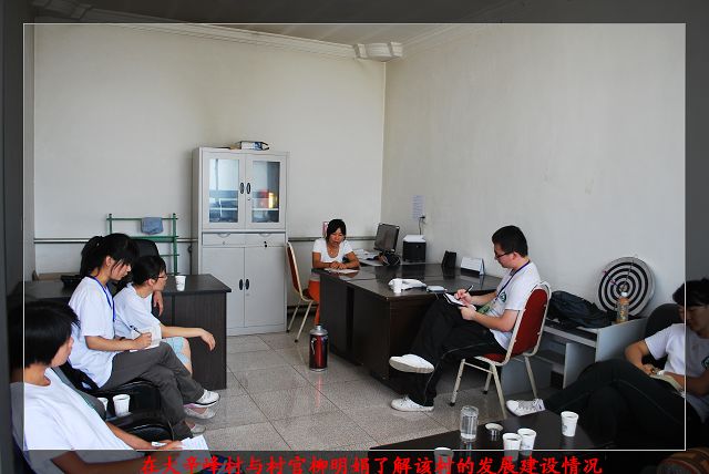7月13日,指导老师贾慧敏与实践团一起商讨并确定了实践活动的详细方案及成员任务分配等诸多问题,使每位成员明确此次实践活动目的和意义以及自己在团队中的价值。7月14日,为了更好的开展实践活动,确定实践地点,指导老师贾慧敏联系到在崔村镇担任村官的同学柳明娟(2008届公司研究生毕业生),并带领队员到昌平区进行前期调研,村官柳明娟为大家介绍了昌平区“一花三果”为主导的都市型现代农业发展模式,并为实践团推荐、联系了几个适合实践团调研的村庄。前期调研让信息中心成员们萌发了热情。此外,队员们了解到新农村的发展模式有待挖掘、规范和宣传,需要更多人的关注和重视。此次调研为接下来的实践活动奠定了良好的基础。