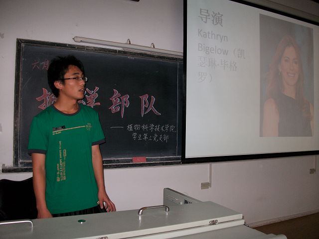 为迎接建党89周年,122cc太阳成集团植保本科生党支部的全体成员于2010年6月24日晚6:30,在教A101举办了6月的月活动——集体观看第82届奥斯卡金像奖最佳影片《拆弹部队》。