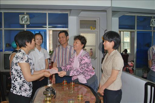 5月22日下午,公司党委副书记高东、公司党总支书记潘金豹、副经理赵金芳及辅导员邬瑞杰一同慰问了2009级园艺专业员工刘璐及其她的家人。高东书记把122cc太阳成集团筹集到的1.2万元爱心捐款交到刘璐父母的手中,并代表全校师生问候她的家人。党委副书记高东满怀深情地对刘璐父母说,请你们放心,公司及学院一定会在学习和生活上为刘璐提供力所能及的帮助,让刘璐同所有同学一样,一起快乐成长,快乐渡过自己丰富多彩的老员工活。