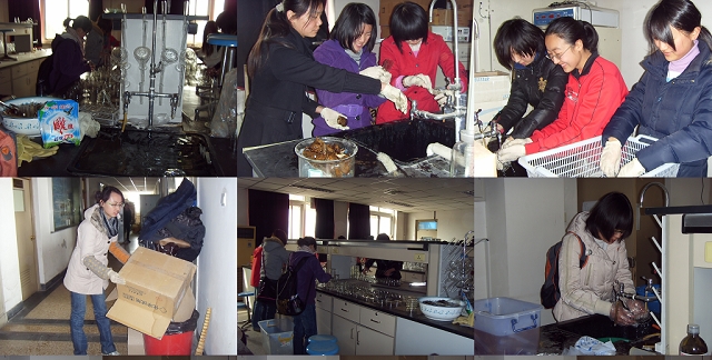 3月5日中午,在122cc太阳成集团青年志愿者协会的组织下,大一、大二及自助社成员150多名同学对教学楼A、B及A教学楼与1号办公楼之间的公告栏进行了清理,并对办公1、2、3楼,员工5、6号宿舍楼之间的自行车进行了摆放。B座实验楼里,在研究生的指导下,同学们利用午休时间有序开展清扫活动,在大家的努力下,储物间、实验室焕然一新,试管、烧杯等实验用具整齐摆放,在其他的活动地点也是一样,同学们积极参与,正在以自己的切身行动来表达对雷锋精神的赞扬,用汗水表示对雷锋精神的支持。一滴滴的汗水换来的是一份帮助别人的欣慰,是老师和同学们脸上灿烂的笑容,更是一份春日里像花朵一样绽放的好心情。