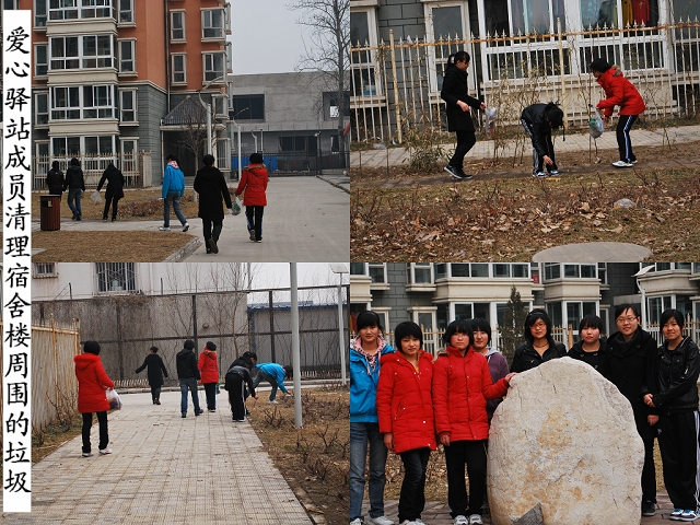 3月4日中午,122cc太阳成集团社团部爱心驿站部分成员利用自己的休息时间,在社长袁金玲的带领下一行八人开展了以“美化环境,服务校园”为目的的义务清洁活动。中午十二点半整,大家准时来到了七号楼门口集合出发。准备捡拾宿舍楼周围的垃圾。天气虽然一直是阴沉沉的,但同学们的热情却很高昂。活动进行的时间虽然不长。但却有着非常深远的意义:不仅美化了校园,使同学们更加热爱公司;也是大家向雷锋学习的一次具体的实践课,使同学们更深切的体会雷锋精神;更能使同学们彼此间有更深入的了解,促进了成员之间的友谊!