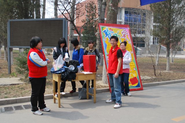 2010年4月6日,209232班同学在院领导、辅导员、班主任老师的指导支持下,开展爱心募捐活动。活动开始前一周,这个团结、爱心洋溢的集体,已经在班委的组织下募集到了900多元的捐款。班长找到领导、老师,希望能够动员全校师生一起行动起来,让爱不断延伸。就这样大家积极组织,分工明确,画宣传板、借桌子、借喇叭,组织写稿、录音……每个人都在忙碌着。在师生共同的努力下活动进行的很顺利,同学的积极性也调动到最高。在记者采访宣传板前的同学时,他们告诉记者:“能多募集一元钱,就能减轻刘璐一点负担,我们就觉得很高兴,别的困难都能克服,我们不累”!朴实、感人,他们的热情感染着周围的师生。