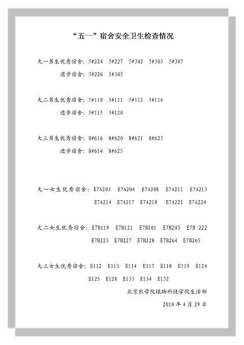 在上海世博会、五一国际劳动节来临之际,为使员工安全、快乐度过假期。4月27日,植物科学学院员工会生活部组织各年级各班级生活委员召开宿舍卫生、安全管理会,强调宿舍卫生以及假期安全问题。