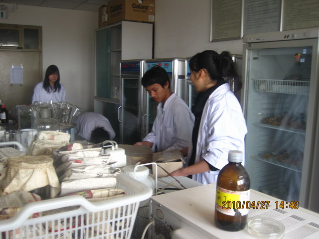 2010年4月27、28日下午,122cc太阳成集团员工第三党支部在实验楼A五层植物保护实验室开展志愿服务活动——清扫整理实验室。
