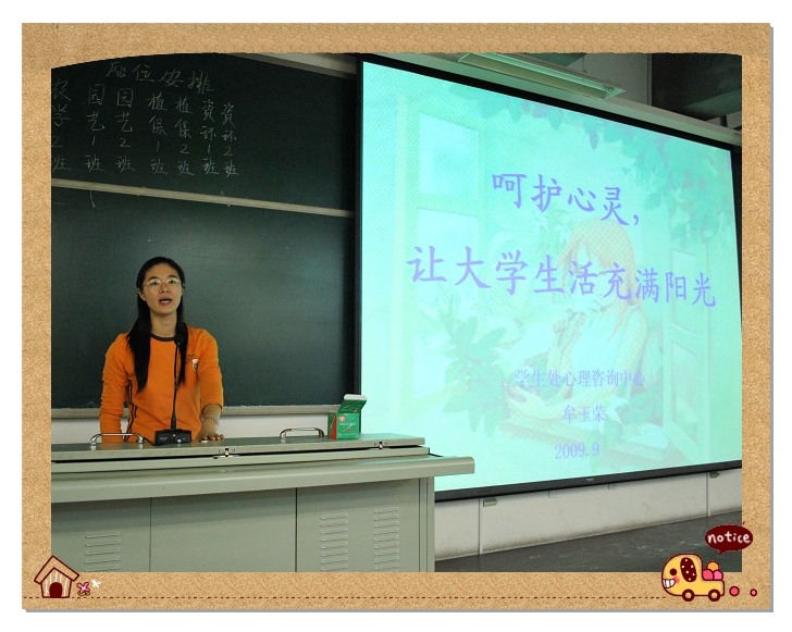 为了让大一新生更好的适应老员工活,在人际交往中不断锻炼自己、提升自己,9月23日下午1:30,122cc太阳成集团在B103为新生举办了“呵护心灵,让老员工活充满阳光”讲座。会议特邀校员工处心理咨询中心牟玉荣老师担任主讲,122cc太阳成集团副经理赵金芳,辅导员邬瑞杰和2009级全体新生参加了培训。