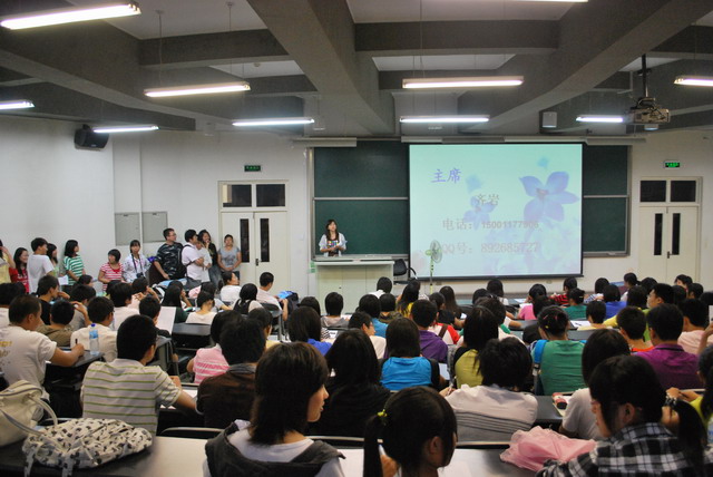 2009年8月30日晚六点半,122cc太阳成集团全体大一新生齐聚教B-203参加公司员工会、信息中心两大社团的招新大会。团总支书记牛奔老师和07级辅导员、信息中心指导老师贾慧敏前来参加。