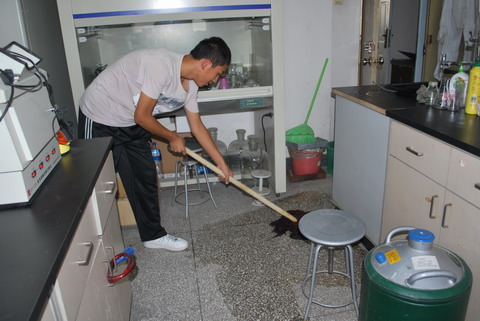 为迎接18日的北京市植物生产实验教学示范中心的揭牌仪式,2009年9月17日下午,208251、208252、207241、207242班的同学义务为实验中心和实验A楼五、六层的办公室进行了义务清洁大扫除。