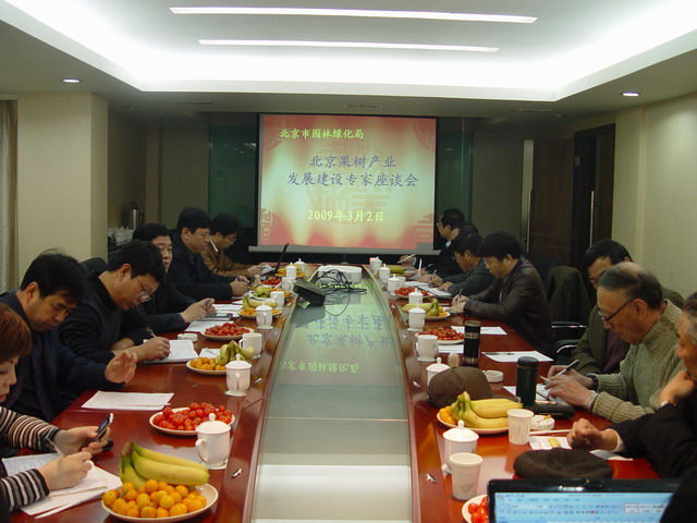 2009年3月2日上午,北京市园林绿化局“北京果树产业发展建设专家座谈会”在北农酒店会议室召开,会议就北京市果树产业发展建设问题展开讨论。