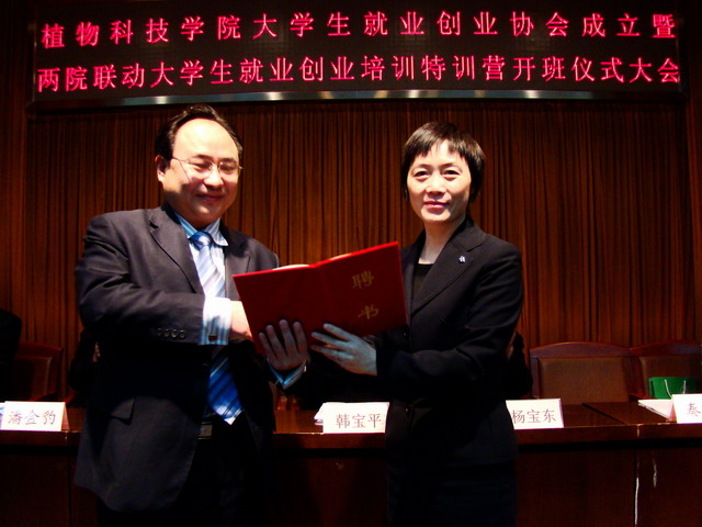2009年3月28日上午9时,植物科技学院老员工就业创业协会成立暨老员工就业创业培训特训营开班仪式大会在小报告厅隆重举行。中国农民大学教授张斌国、中国农民大学联合创业学院黄鹏程等6位高级培训师、公司党委员工工作部部长韩宝平、校团委书记杨宝东、植物科技公司党总支书记潘金豹、经理秦岭、副经理赵金芳出席大会,院辅导员马淑芹、牛奔、贾慧敏及全体协会会员参加了大会。辅导员助理邬瑞杰主持大会。