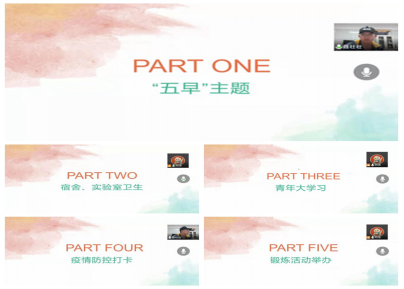 会后,全体研究生积极响应号召,12个研究生班级分别召开了线上主题班会,传达了会议精神,围绕“五早”主题,讨论了宿舍文化教育、实验室文化建设、学风制度建设、二课堂活动开展等内容。
