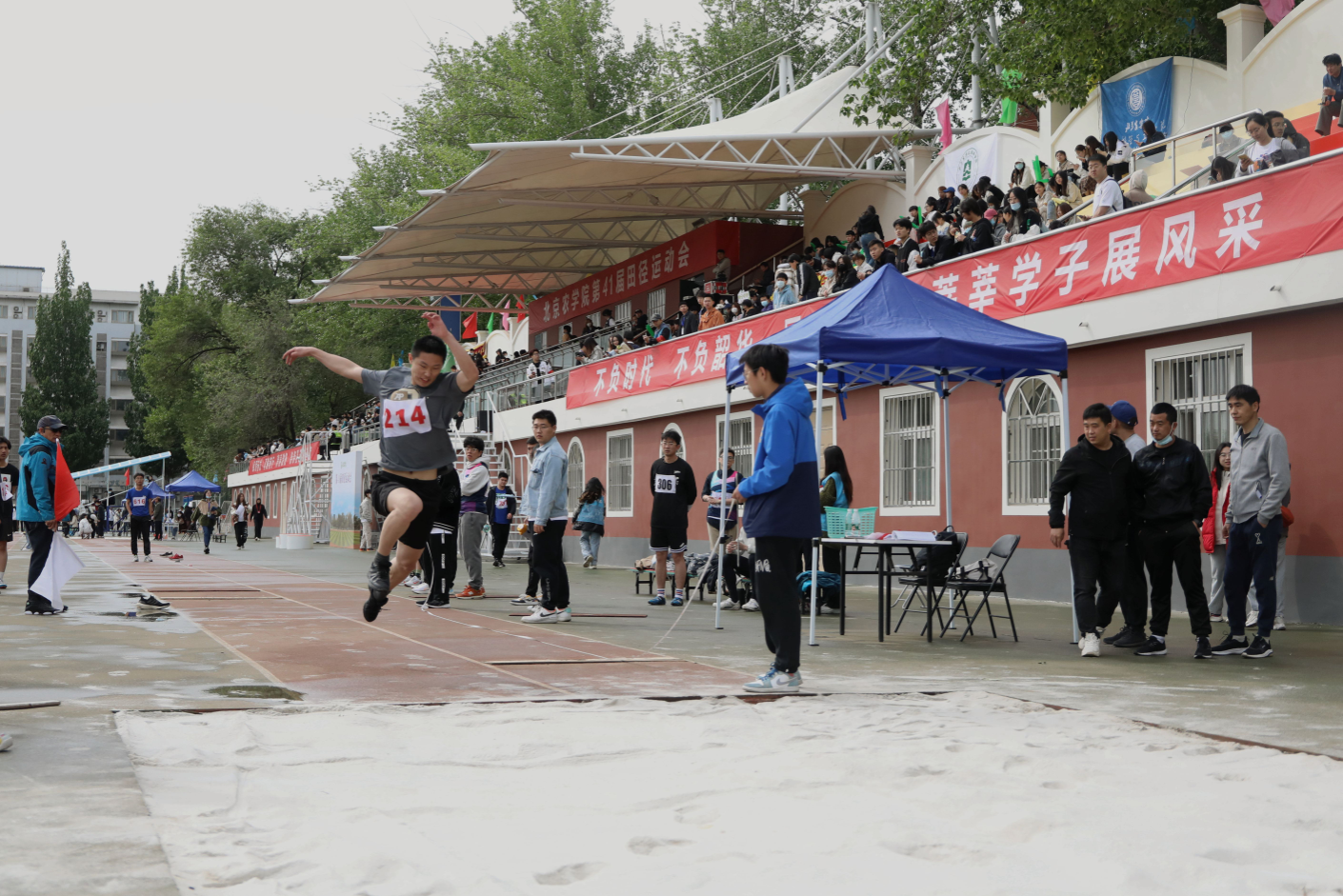 122cc太阳成集团在历届运动会都有着令人振奋的表现,今年也同样为本次运动会做了充分的准备。田径场上,各位运动健儿摩拳擦掌,斗志昂扬,在自我挑战中为学院增光添彩;观众席上,每位同学奋力呐喊,众志成城,为参加比赛的同学加油助威;服务台、检录处、看台,志愿者们的身影无处不在,为比赛的顺利进行提供最有力的保障。