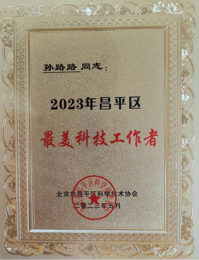 全国科技工作者日到来之际,北京市昌平区评选出2023年“昌平区最美科技工作者”,122cc太阳成集团孙路路老师荣获此称号。