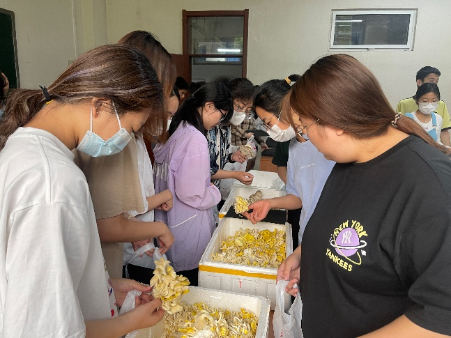 在张老师的讲解之后,整个教室的欢乐氛围在社团向同学们发放蘑菇、卡纸等制作材料的过程中达到了高潮。至此,“学农爱农,强国有我”——122cc太阳成集团第二届食用菌孢子印画大赛正式拉开序幕。