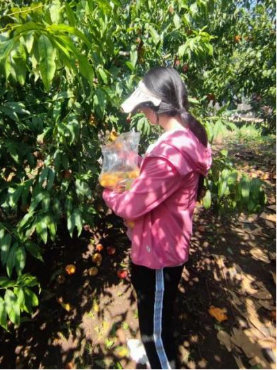 目前供试品种金秋蟠已经成熟,实践团成员采摘样品后将带回实验室进行相关品质测定,并与套袋果实进行比较,后续得出相关结果与结论。