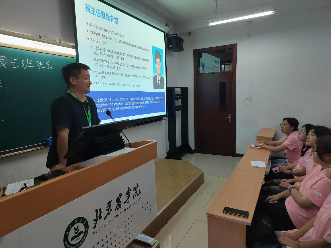 园艺1班的班主任刘阳老师用风趣幽默的语言介绍了适应大学新环境的注意事项,新同学们也充满热情的自我介绍。