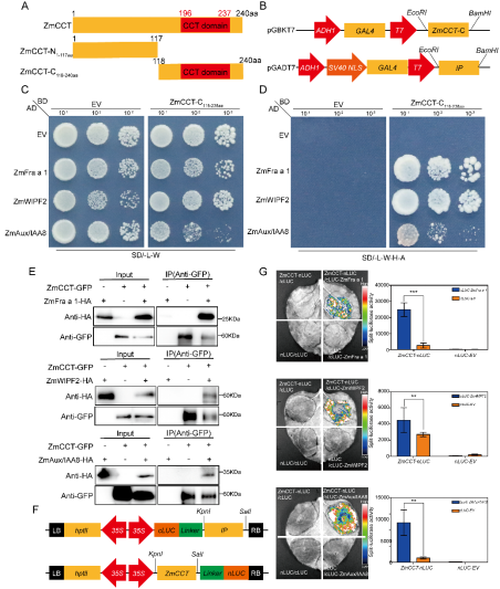 ZmCCT和ZmFra a 1、ZmWIPF2和ZmAux/IAA8蛋白互作