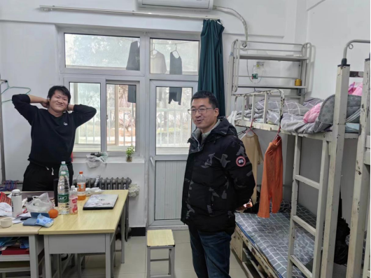 张卿深入宿舍,检查各项情况,并与员工恳谈交流,了解同学们近期生活和学习情况。亲切叮嘱离校同学注意离校与返校途中的交通安全,留校同学则应注意留宿安全问题。