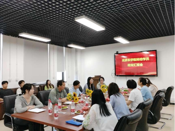 特培学员周贵兰详细汇报了学习情况和取得的成绩,她表示一年的学习收获颇丰,不仅系统学习了作物生产的理论课程,而且深度参与了科研项目的工作,通过理论和实践结合,在各方面得到了很大的提升,争取将学到的知识和技能用在实际工作中,特别感谢公司、学院和老师们的培养和指导。