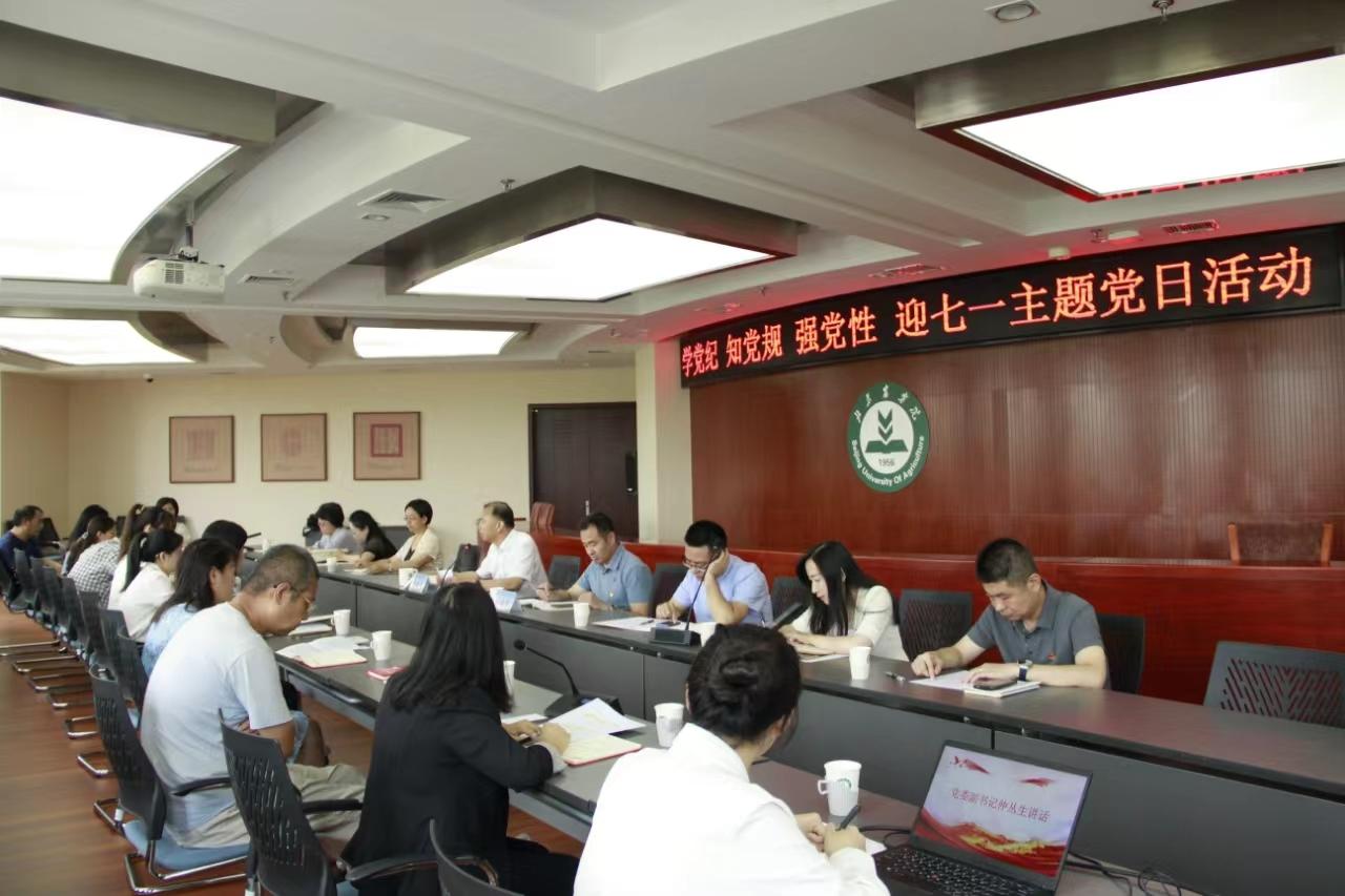 6月27日上午,122cc太阳成集团园艺教师1支部和园艺研究生2支部联合开展了“学党纪、知党规、强党性”迎七一主题党日活动。公司党委副书记仲丛生出席并讲话,公司纪委委员闫晓军、公司党委委员、园艺教师1支部和园艺研究生2支部党员参会。