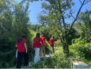 随后,实践团前往初心广场、初心亭、英雄山进行参观学习,重走“情报小路”,祭奠革命英烈,感悟先烈遗志,传承红色基因,深刻体会涧沟村的红色英雄情结和历史文化底蕴,赓续红色血脉。
