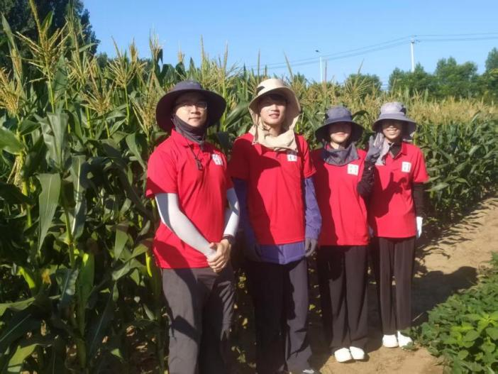 将科研工作与农业实践紧密结合,让理论成果真正服务于生产一线。和合园团队正以实际行动践行着“把论文写在祖国的大地上”这一精神指引。怀揣着这份信念与热忱,团队成员于7月下旬再次奔赴科技小院,拖着测量仪器,不顾旅途劳顿,便在指导老师带领下走进玉米田,以实际行动践行着科研为民的初心。