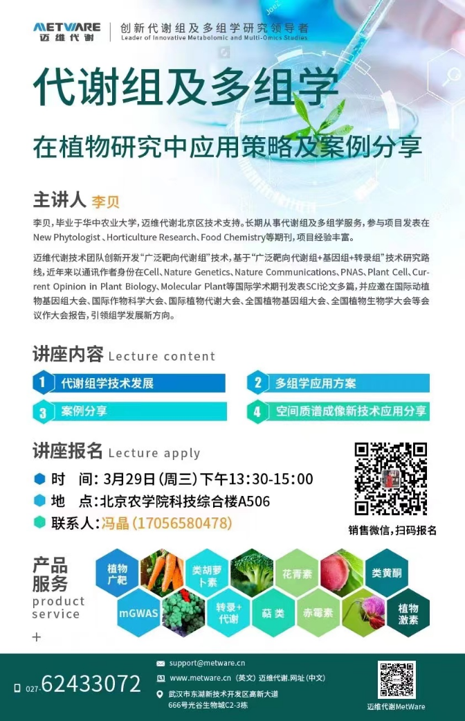 主 题:代谢组及多组学在植物研究中应用策略及案例分享