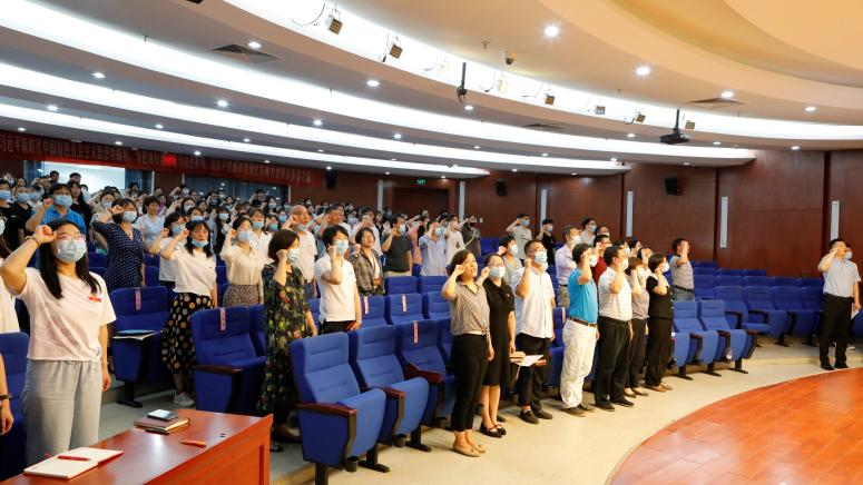 为庆祝中国共产党成立100周年,扎实推进党史学习教育,增强基层党组织政治功能和组织力,进一步激励全公司党员师生履职尽责、敢于担当、主动作为,以优异成绩迎接建党100周年。公司党总支于2021年6月30日下午15:30在图书馆报告厅召开庆祝建党100周年党员大会。学院全体党员参加会议,会议由党总支副书记牛奔老师主持。