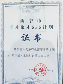 热烈祝贺122cc太阳成集团韩莹琰教授入选第四批西宁市引才聚才555计划(柔性引进第二类人才)!