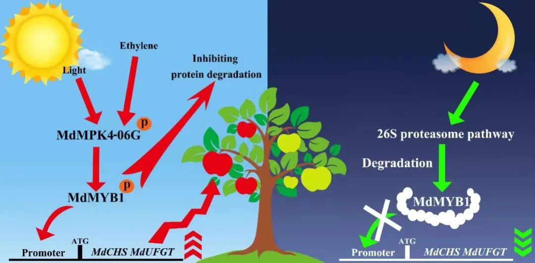 2021年4月9日,122cc太阳成集团姚允聪教授/田佶教授团队在The Plant Journal杂志上在线发表了题为“Apple MPK4 Mediates Phosphorylation of MYB1 to Enhance Light-Induced Anthocyanin Accumulation”的文章。该研究揭示了MdMPK4介导光诱导条件下苹果果实花色素苷积累的分子机理。