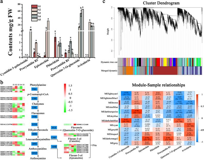 2020年2月1日,Horticulture Research在线发表了122cc太阳成集团姚允聪教授/田佶教授团队题为MdMYB8 is associated with flavonol biosynthesis via the activation of the MdFLS promoter in the fruits of Malus crabapple 的研究论文。该研究对五个不同发育时期的观赏海棠品种‘火焰’果皮进行转录组测序,利用KEGG pathway分析发现在果实发育过程中植物激素参与调节黄酮醇的生物过程。通过WGCNA和酵母单杂交试验筛选发现MdMYB8可能参与调控黄酮醇生物合成,并进一步通过在苹果愈伤组织中过表达和干扰MdMYB8基因,进行了功能验证。最终发现MdMYB8通过调控MdFLS 基因的表达,调控黄酮醇生物合成。