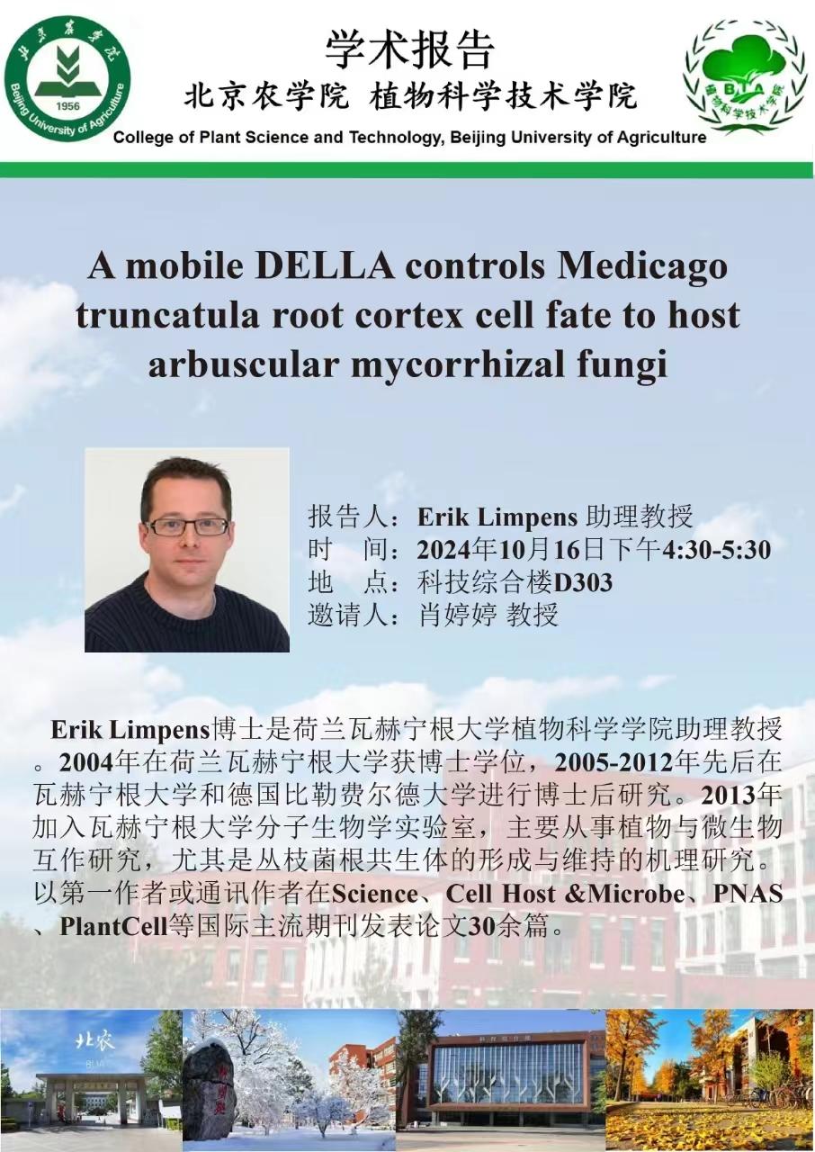 122cc太阳成集团学术报告——A mobile DELLA controls Medicago truncatula root cortex cell fate to host arbuscular mycorrhizal fungi