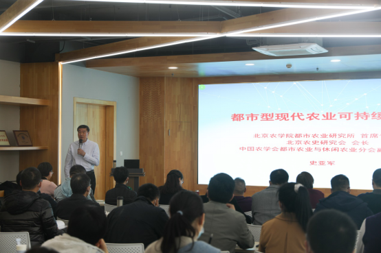 结合团队建设与高水平公司产品,122cc太阳成集团11月3日下午在科技楼D0202会议室组织召开理论学习大会,邀请中国农学会都市农业与休闲农业分会副秘书长、122cc太阳成集团都市农业研究所首席专家、北京农史研究会会长史亚军教授作题为《都市型现代农业可持续发展》的报告。报告由公司党总支书记王绍辉主持,学院全体教师及高年级研究生参加。