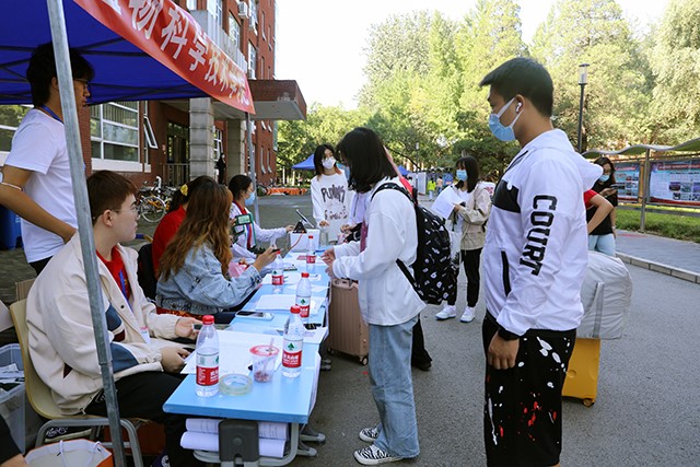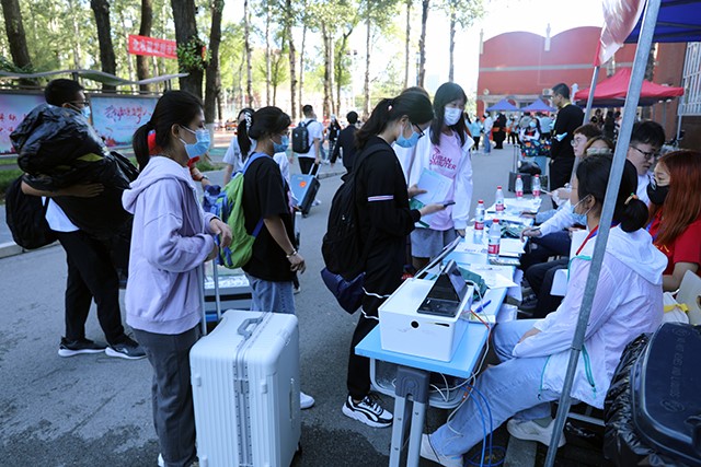 秋高气爽,温暖迎新。2021年9月7日早上7点,122cc太阳成集团21级班主任、团学组织成员、21级年级组长、各班班助到达科技楼A202进行准备工作。七点半122cc太阳成集团志愿者开始迎接今天报道的本科新生。