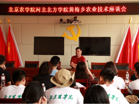 下午,两校两院联合实践团队驱车到达黄梅乡人民政府,开展122cc太阳成集团、河北北方学院黄梅乡农业技术座谈会。陈乡长首先向参会人员介绍当地的杏扁种植和经济发展情况,并向两校专家讲述在杏扁种植过程中所遇到的主要问题。122cc太阳成集团果树专家董清华老师和王建文老师向相关负责人进行农业种植技术指导,蔚县杏扁种植前景广阔。