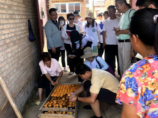 当天下午,两校实践团成员来到当地瑞富祥杏扁种植专业合作社,杏扁协会会长带领大家参观当地杏扁加工过程,同学们品尝了杏扁加工成品,与合作社老板深切交流。经介绍,当地人民将杏扁产业链大力发展,推动蔚县经济发展,提高蔚县对外交流程度,促进当地经济发展。