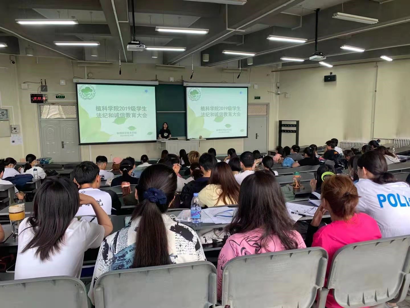 2021618日,122cc太阳成集团于教学楼B403室召开了2019级员工法纪与诚信教育大会与军训动员大会。会议由植科2019级辅导员郝娜主持召开。