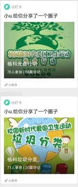 活动期间同学们的打卡热情十分高涨,都踊跃晒出自己的光盘照片与垃圾分类照片并且每一次打卡都配有心得体会。