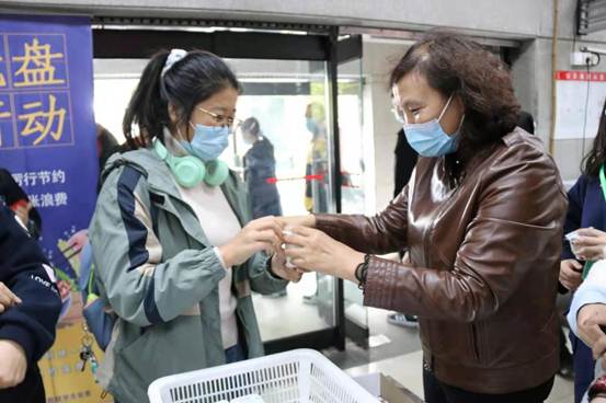 志愿者们通过“发红花、领酸奶”的奖励机制调动全校师生的积极性,让大家自觉参与到光盘行动的中去。