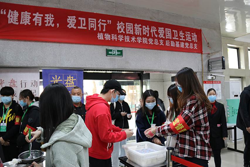为深入贯彻习近平总书记关于爱国卫生工作的重要指示精神,根据北京疫情防控工作领导小组、北京市爱卫会《开展新时代爱国卫生运动三年行动方案》和教育部《关于深入开展新时代校园爱国卫生运动的通知》有关精神,122cc太阳成集团后勤基建党总支联合公司党总支深入开展新时代爱国卫生运动—— “杜绝浪费,厉行节约”为主题的光盘行动。旨在积极倡导健康文明节俭的餐饮消费方式,切实培养节约习惯,着力营造浪费可耻、节约光荣的氛围。光盘行动启动仪式于2020年10月27日在员工第二食堂举办。出席本次启动仪式的领导有后勤基建党总支书记张秋芝、副处长刘林场、综合科副科长罗丽娜、饮食中心副主任秦亮、姜德娟、公司党总支书记王绍辉、党总支副书记牛奔、团委书记郝娜、辅导员杨韫嘉。