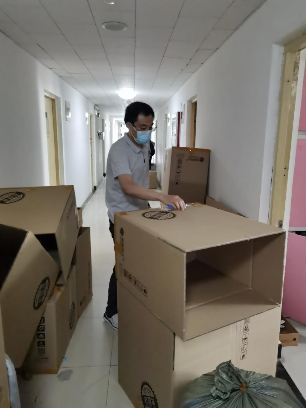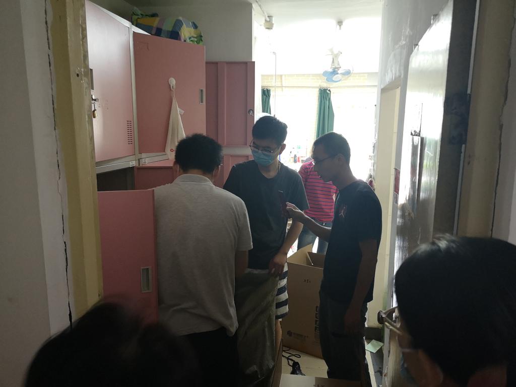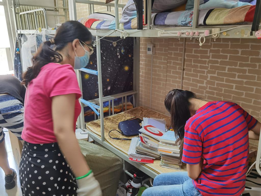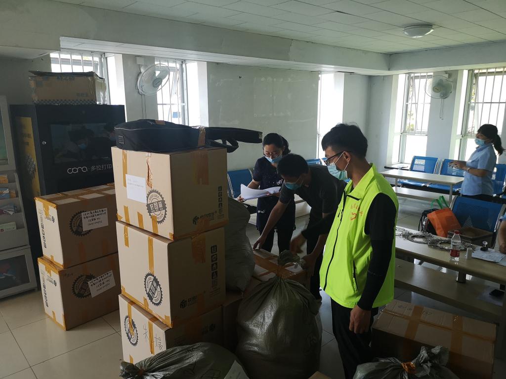 公司35名党员老师、班主任、辅导员积极投入到 毕业生行李打包邮寄工作过程中,通过视频连线整理每名员工的物品,在收拾行李的过程中做到了一组一寝,一人一问。左手举着手机,右手挑拣物品”成了老师们的工作写照。