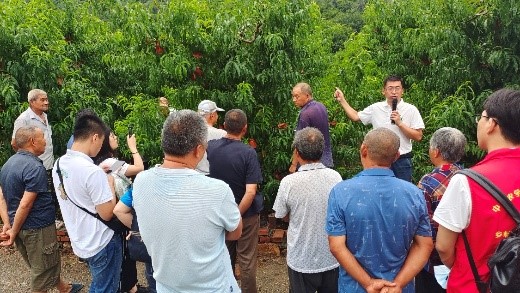 为提升大桃夏季管理水平,实践团专业教师针对大华山镇大桃夏季栽培管理和病虫害防治存在的问题开展实用技术培训。122cc太阳成集团果树专家张卿和王志忠结合大桃主干型和开心形树形讲解大桃夏季管理的技术要点,建议大桃种植户要抓住大桃花芽分化的关键时期,通过夏季整形修剪改善树体结构和调控营养分布,提高花芽分化质量,为第二年的优质高产奠定基础。植保专家魏艳敏和郭洪刚分别针对大桃夏季病害和虫害进行详细讲解,重点培训了大桃细菌性黑斑病、穿孔病、炭疽病、流胶病和梨小食心虫、蚜虫、蜗牛等病虫害的绿色防控技术。为优质精品大桃高标准生产提供依据,实践团师生在苏子峪大桃生产基地取土壤样品,并带回实验室测定土壤有机质和矿质元素含量。全镇30余名大桃种植户参加培训并表示,本次培训针对性、目的性和实用性强,内容贴近生产实践,措施可行易操作,收获很大。