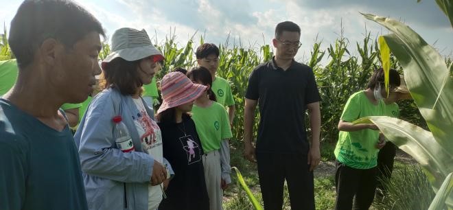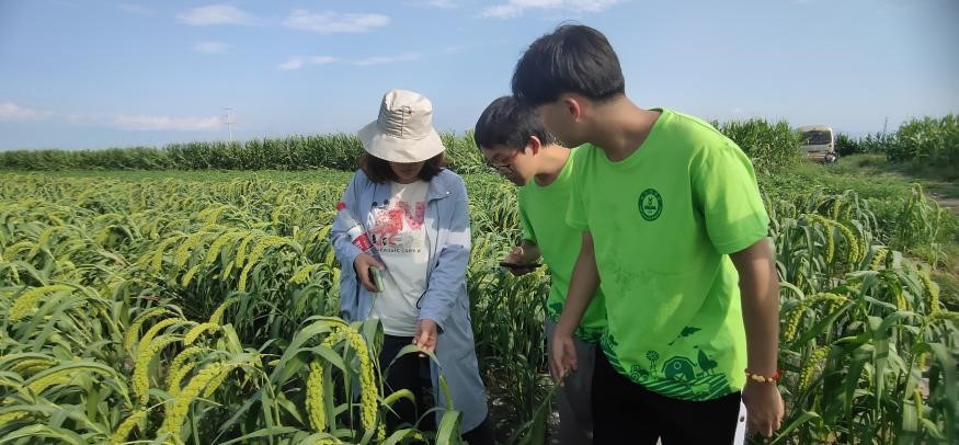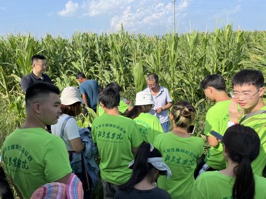 实践团到玉米大豆带状复合种植基地进行调研。该技术改单一作物种植为高低作物搭配间作、改等行种植为大小垄种植,充分发挥边行优势,实现玉米产量基本不减、增收一季大豆,该模式集高效轮作、绿色增收、提质增效三位一体,实现了一田双收稳粮增豆、一种多效用养结合。