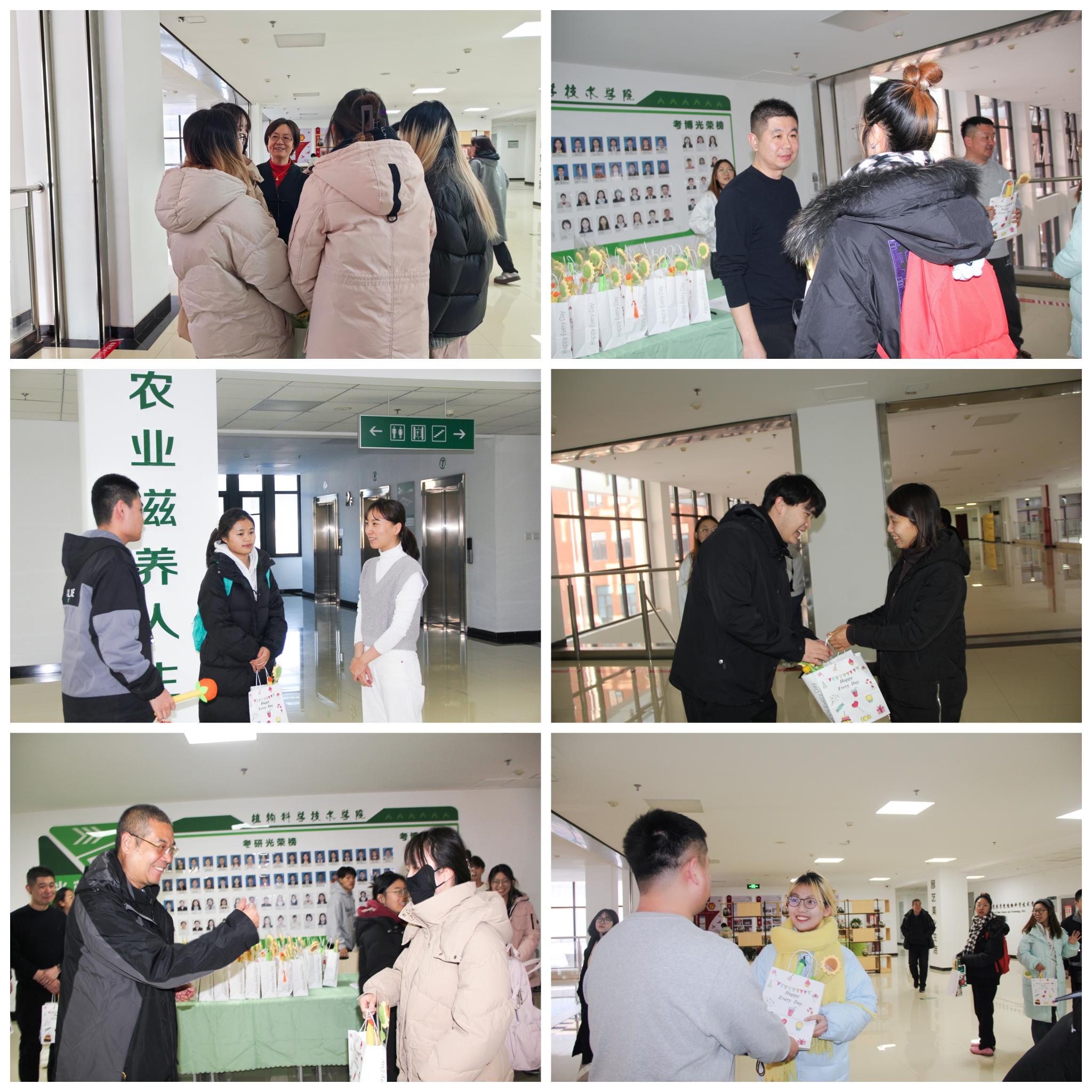 公司的暖心礼包中包含一朵象征“一举夺魁”的编织向日葵,有一个缓解紧张,放松身心的艾草锤,也有一张祝福明信片。每一份礼物、每一个礼包,都蕴含着学院对考研学子深深的祝福与期盼,老师们亲手送上暖心礼包,鼓励大家要坚守考研的决心,全力以赴完成最后的冲刺,也要保持良好心态,调整备考状态,争取一举夺魁。